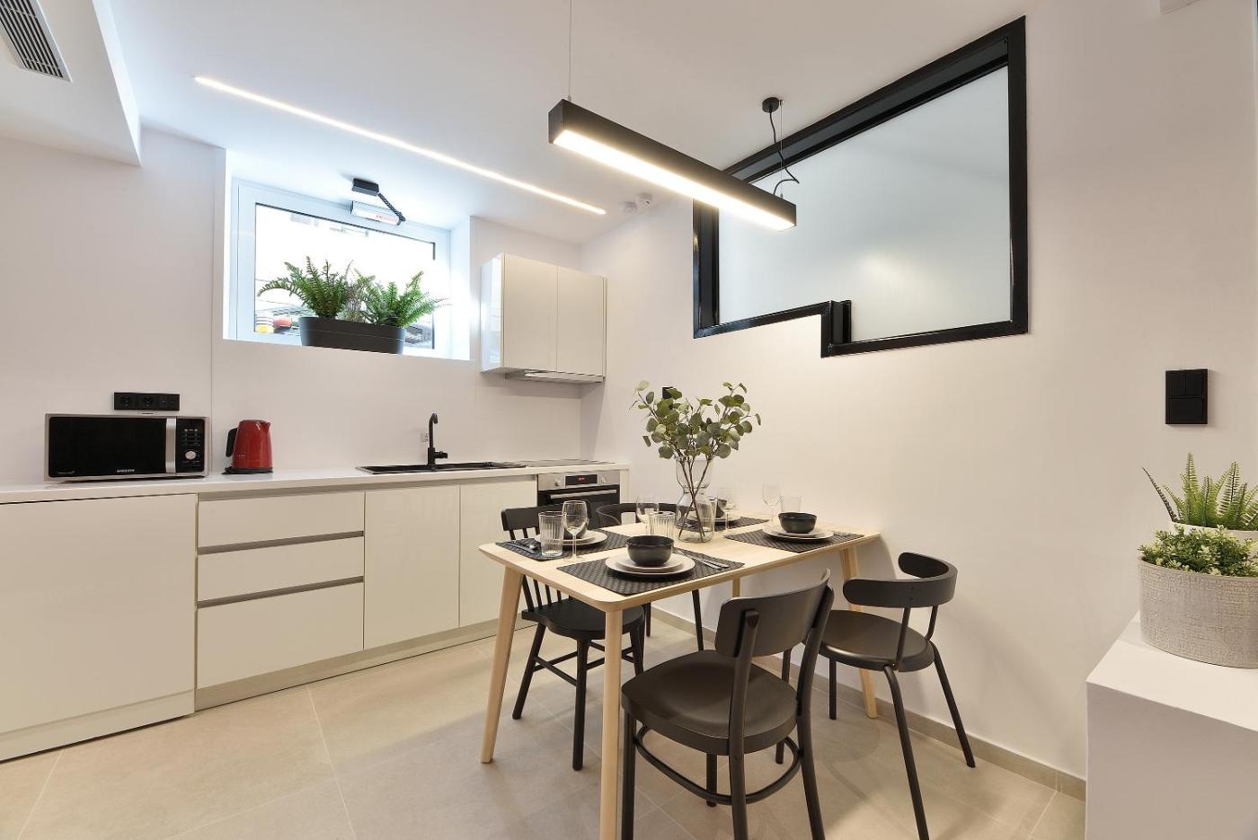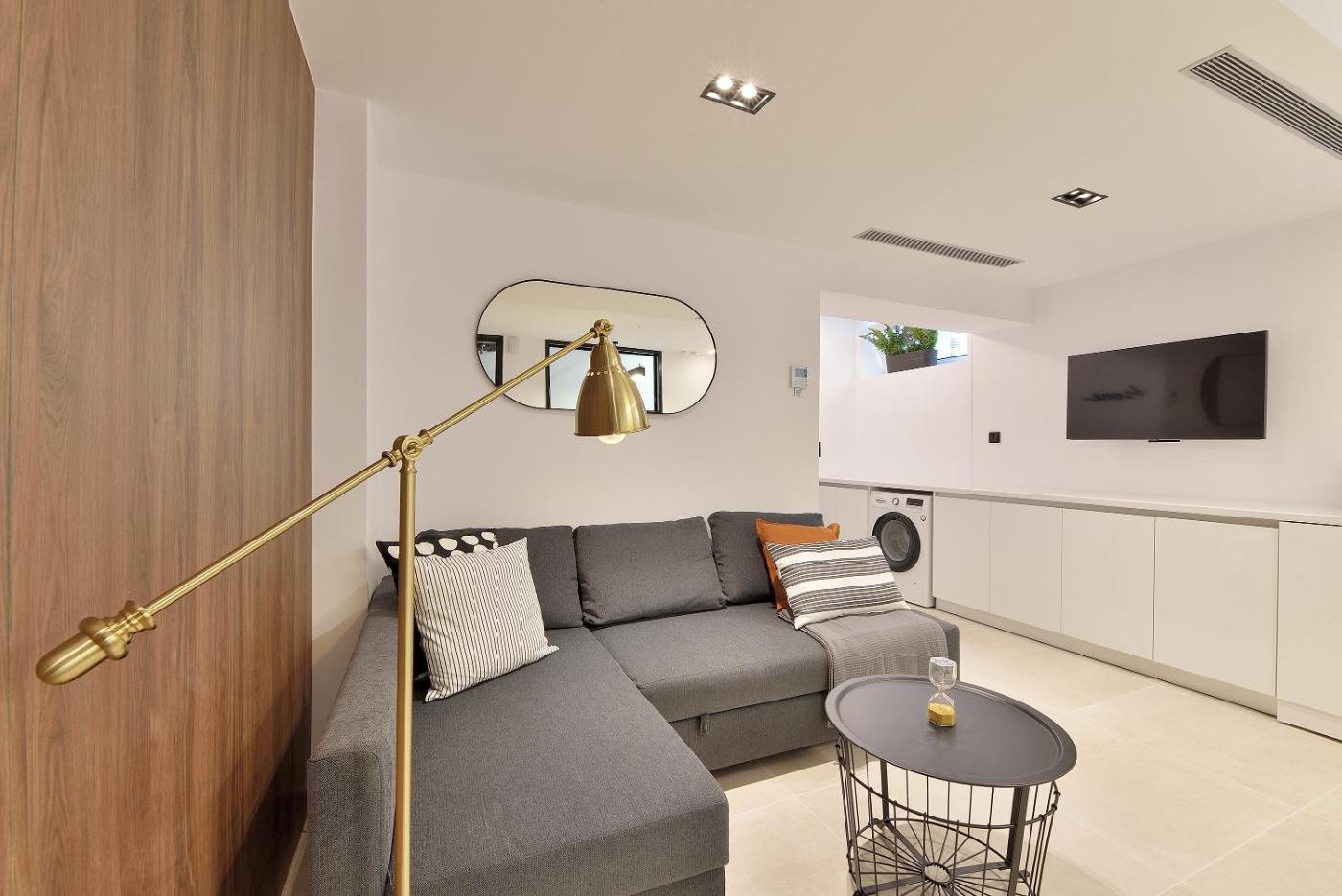 One-Bedroom Apartment. This apartment includes 1 living room, 1 separate bedroom and 1 bathroom with a bath and free toiletries. In the fully equipped kitchen, guests will find a stovetop, a refrigerator, kitchenware and an oven. The air-conditioned apartment offers a flat-screen TV, a washing machine, a tea and coffee maker and a wardrobe. The unit has 2 beds.